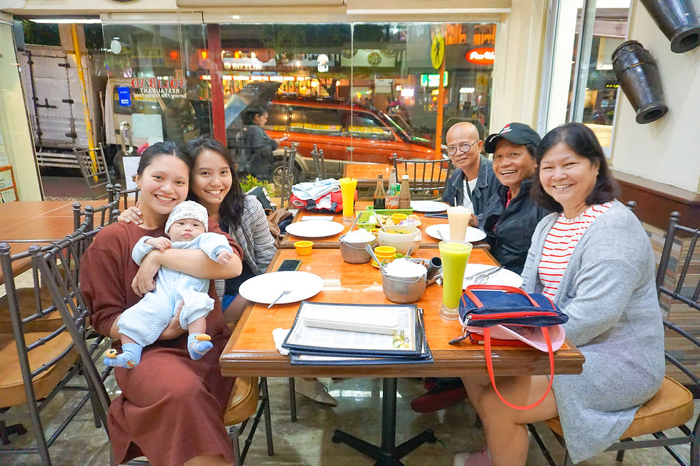 At 8 PM, it is dinner time, and the umbrellas cover the wet pavements as I look down from the balcony. The rain continues to pour, and to get to Solibao where we are set to have dinner, we stop by at random roadside vendors to buy umbrellas. With three umbrellas for five people, we walk past stop lights, cross pedestrian lanes, and soon enough we arrive at, the internet says, "Baguio's best Filipino restaurant."